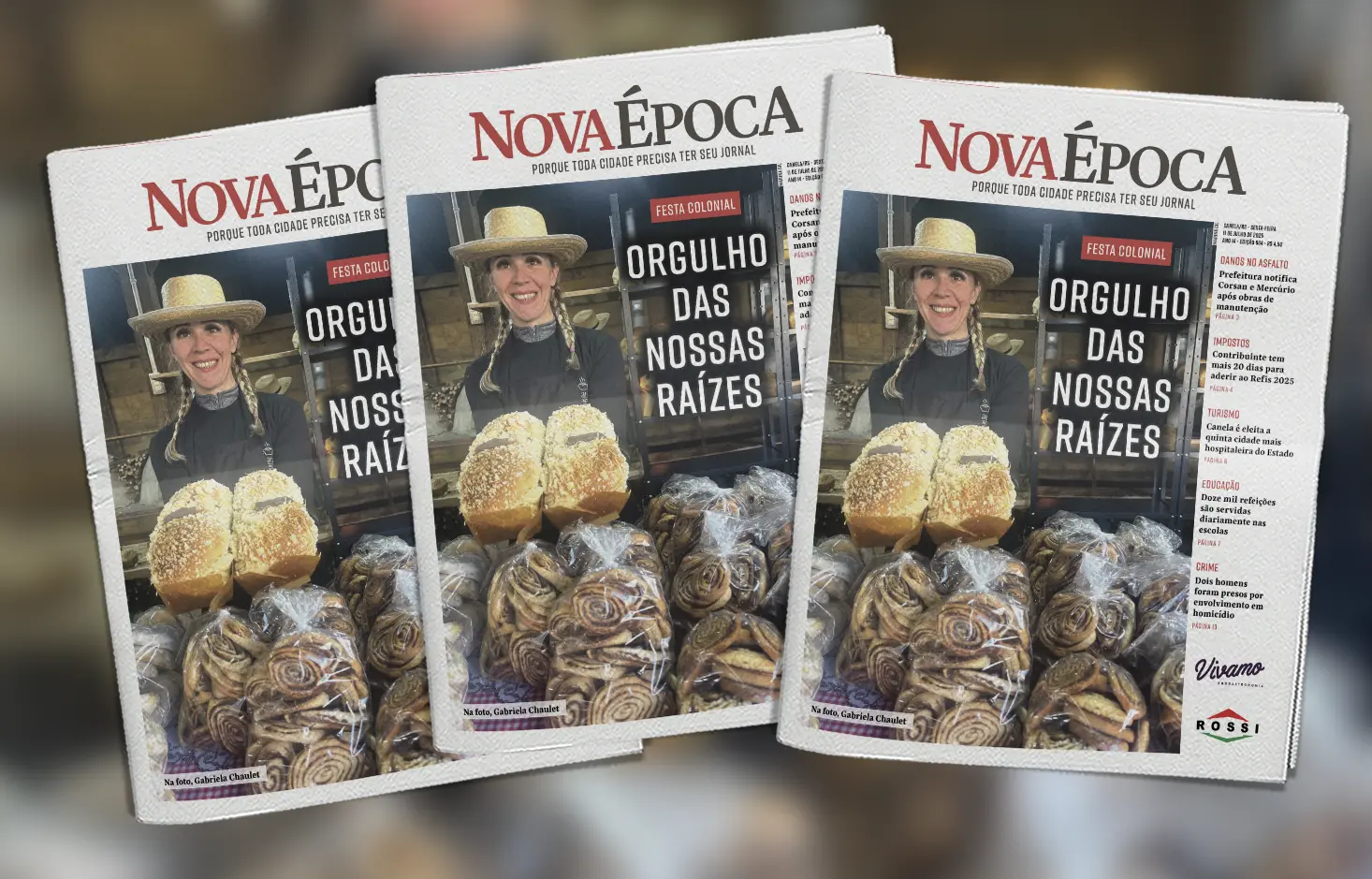 A tradição e os sabores do interior de Canela estarão presentes na 31ª Festa Colonial de Canela. A festividade inicia na sexta-feira (11), a partir das 18 horas na Praça João Corrêa. Com mais de 40 atrações gratuitas, o evento celebra a cultura, o trabalho e as delícias produzidas pelos agricultores canelenses. Pela primeira vez, a Festa contará com os Jogos Coloniais (Bocha, Canastra e 66), promovendo integração e resgate dos esportes típicos do campo. Até 27 de julho, a Praça João Corrêa será transformada em um grande espaço de convivência e celebração da agricultura familiar. Os visitantes poderão degustar quitutes do café colonial, e mais: pães e cucas quentinhos, saídos direto dos fornos a lenha, além de produtos coloniais, artesanato e pratos típicos preparados com o carinho dos produtores locais. Foto: Arthur Dias A programação artística inicia já nesta sexta-feira, com o espetáculo teatral “Retratos”, às 19h30, seguido do show sertanejo da dupla Rui & Mateus. No sábado (12), o público poderá conferir o inédito Desfile Raízes da Terra, os primeiros Jogos Coloniais e três grandes apresentações no Multipalco. As atrações serão Juliano Bolfe e Emílio Fogaça, às 17h; Grupo Tarca, às 18h30; e Guri de Uruguaiana, às 21h, com o show “Os causos do Guri”. Na parte da manhã, a Feirinha Canela + Verde será um dos destaques da programação. No domingo (13), sobem ao palco os grupos Renascer do Sul, às 17h e Retruco, às 19h, mantendo viva a música tradicionalista. A bandinha germânica itinerante proporcionará um clima ainda mais festivo ao evento, com apresentações aos sábados e domingos, pela manhã e a tarde. “Vamos ter muita cultura e gastronomia, será uma linda festa! Trabalhamos para oferecer à nossa comunidade e visitantes um evento que enalteça as nossas raízes, prestigie os talentos locais e ainda grandes atrações de renome no Estado” afirma o prefeito Gilberto Cezar. A Festa Colonial de Canela seguirá até o dia 27 de julho com várias atividades culturais, oficinas, apresentações artísticas, feira de artesanato e atrações para todas as idades. Rainha Mariana dos Santos Bernardes, Princesas Maria Eduardo de Melo Abreu e Karoline Mineiro Pinheiro Foto: Arthur Dias Mais informações e programação em @festacolonialcanela. ELES FAZEM A FESTA OS CHAULET A famíla Chaulet, da localidade de Bugres, interior de Canela, participa da Festa Colonial desde 2013. São 13 anos, completados neste 2025, em que a família foi aumentando, novas gerações aderindo à alegria de trabalhar com afinco na festa que estampa o capricho deles na fabricação de pães de milho, cucas, biscoitos, e um tipo de fast food com gostinho de tradição: pãezinhos de linguiça. A simpática Gabriela Chaulet lidera a linha de frente no balcão dos Chaulet na casa de fornos onde eles assam em vendem, na verdade, o ano todo, de quintas a domingos. “Mas é na Festa Colonial que a gente se supera, vêm pra cá a família toda, mais ajudantes”, diz Gabi. OS QUEIJOS PREMIADOS Também está se tornando tradição na Festa Colonial a participação da Queijaria Alvorada Missioneira. Maria Eduarda Kaefer (na foto) falou do orgulho em trazer para a Praça Corrêa o produto premiado que a sua família, metade canelense (por parte da mãe), metade missioneira (o pai é de São Paulo das Missões) faz com tanto esmero. Vanderlei Kaefer iniciou o aprendizado da queijaria na Alemanha e desenvolveu produtos quando trabalhou na ex-Fazenda Serra Azul, no Saiqui. Vendia, na Feirinha Ecológica, aos sábados, e durante a pandemia abriram a loja na estrada Gramado-Canela, próximo à entrada para o bairro São José. A Queijaria tem conquistado prêmios em âmbito estadual, nacional e internacional com o queijo Yamandu, marca registrada. Uma verdadeira grife com toque colonial, dando sabor extra à nossa Festa.e Rodrigo Batista. Os músicos da banda são Mateus Hehn, Nicolas Oliveira, Marcelo Clement,Erique Hannel e Rogério Heurich. Os ensaios aconteceram no pavilhão da Apae Canela. A TRADIÇÃO VAI AO PALCO Foto: Márcia Nega Na programação artística da Festa Colonial uma peça teatral vai ser encenada, espetáculo que convida o público a embarcar numa viagem pelo tempo, revelando as raízes da cidade, o trabalho das famílias do interior e a beleza de uma cultura moldada pelo suor, pela fé, pela perseverança e pela alegria simples do cotidiano rural. Com personagens típicos, causos divertidos e cenas emocionantes, a peça celebra o espírito da Festa Colonial, resgatando histórias que brotam da terra e florescem em orgulho. Criação e direção de Carla Reis, com Maria Cristina da Silva, Evelin Hillin, Carol Thoen, Laura Port, Tiago Santos, Cristiano Silveira e Rodrigo Batista. Os músicos da banda são Mateus Hehn, Nicolas Oliveira, Marcelo Clement, Erique Hannel e Rogério Heurich. Os ensaios aconteceram no pavilhão da Apae Canela.