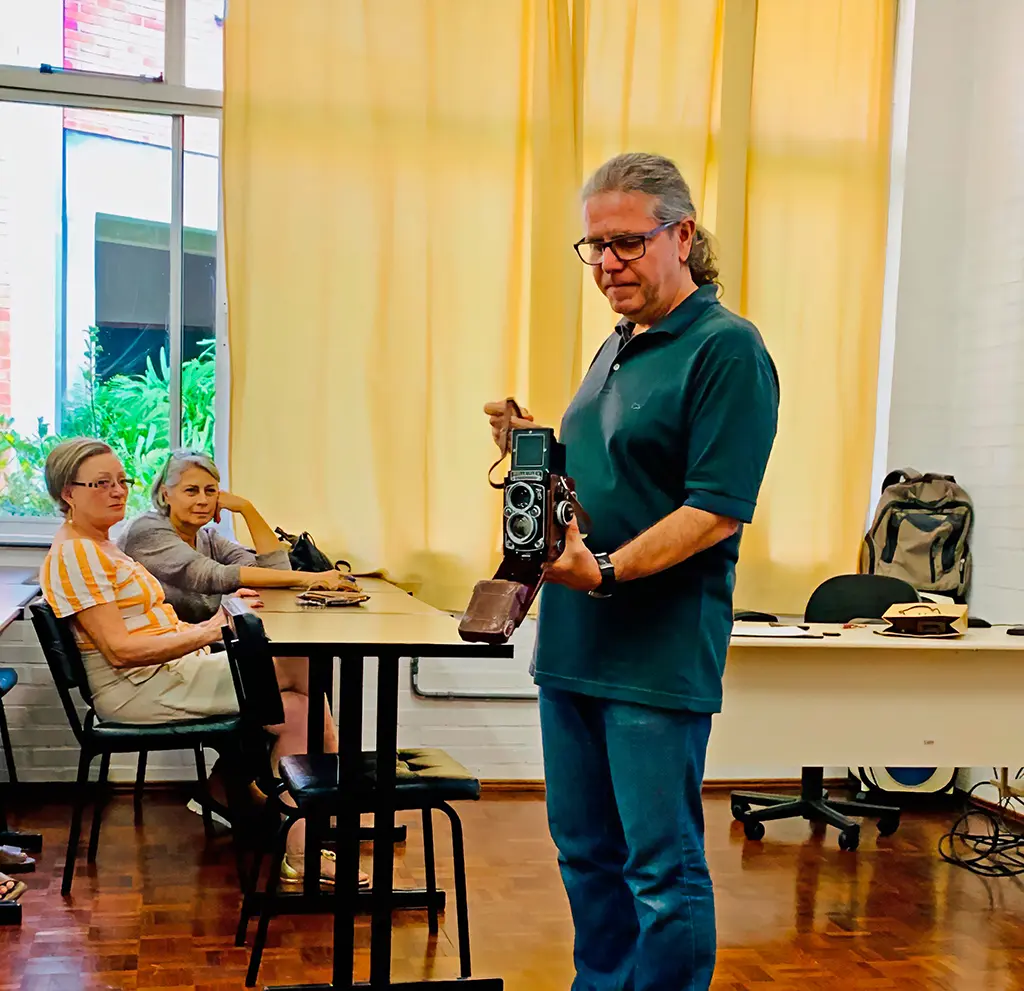 Tivemos exposições no saguão do campus, na rua coberta, exposições virtuais com vídeos das fotografias, experimentações práticas na sala de aula e saídas em grupo para fotografar ao ar livre. A criatividade e a fotografia desempenham um papel essencial na terceira idade, pois estimulam a mente, fortalecem a autoestima e promovem conexões afetivas com o presente e o passado. Ao explorar a arte de fotografar, eles redescobrem o mundo ao seu redor com um novo olhar, registram memórias, expressam emoções e exercitam a percepção estética. São alunos, são fotógrafos, são amigos que fiz e que me alegram em cada semestre.”