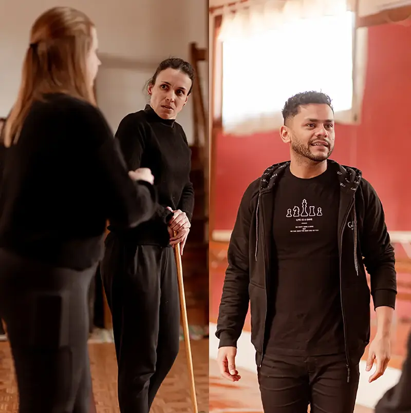 Para uma das turmas do curso, coube a apresentação de A Casa de Bernarda Alba, a aclamada obra do dramaturgo e poeta espanhol Federico García Lorca. Conhecido por sua sensibilidade e por abordar temas como a opressão, a liberdade e a paixão, Lorca (1898-1936), de quem Lisi Berti é fã ardorosa, é um expoente da literatura espanhola do século XX. A Casa de Bernarda Alba é uma poderosa crítica social que retrata a vida de cinco irmãs aprisionadas pela tirania de sua mãe, Bernarda, após a morte de seu segundo marido. As adaptações de Lisi Berti incluem colocar três gênios masculinos no palco (em uma peça escrita para ter somente atrizes): o próprio Lorca e seus amigos Luis Buñuel e Salvador Dalí. Dentre o bom elenco, atentem para Fernanda Louzada e Felipe Araújo de Oliveira (ao lado), que personificam a Bernarda e o Lorca.