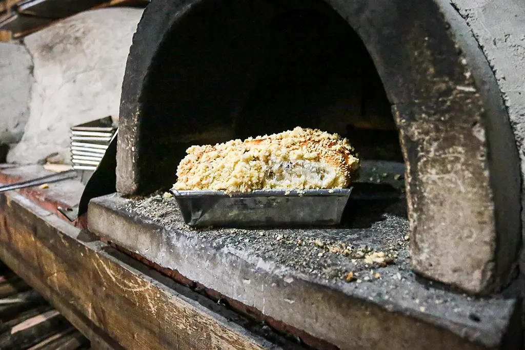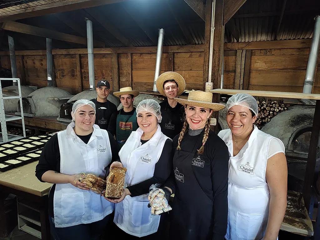 A famíla Chaulet, da localidade de Bugres, interior de Canela, participa da Festa Colonial desde 2013. São 13 anos, completados neste 2025, em que a família foi aumentando, novas gerações aderindo à alegria de trabalhar com afinco na festa que estampa o capricho deles na fabricação de pães de milho, cucas, biscoitos, e um tipo de fast food com gostinho de tradição: pãezinhos de linguiça. A simpática Gabriela Chaulet lidera a linha de frente no balcão dos Chaulet na casa de fornos onde eles assam em vendem, na verdade, o ano todo, de quintas a domingos. “Mas é na Festa Colonial que a gente se supera, vêm pra cá a família toda, mais ajudantes”, diz Gabi.