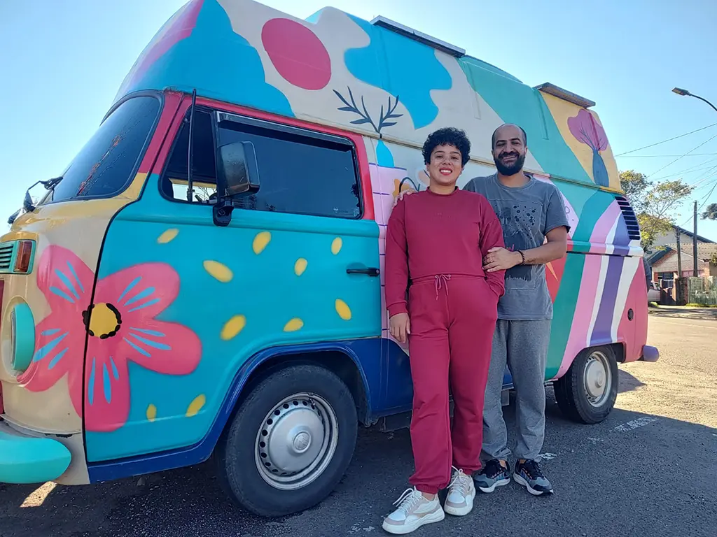 O lado bonito da experiência dos curitibanos, no entanto, não está só na perua da VW ou nas paisagens que eles já viram nos 16 estados brasileiros que percorreram. Está na atitude deles, ao interagirem, quando possível, nas comunidades onde passam e ficam por alguns dias. Flaviane fala sobre suas obras infantis, faz contações de histórias, oferece belos produtos artesanais. Também jornalista, Flávio gosta de palestrar sobre o livro Colorido pelo Sol, focado no filho Pietro, o divisor de águas na vida deles. A propósito: eles estarão neste sábado (21), pela manhã, na Feirinha Ecológica e Cultural ao lado do Centro de Feiras. Daqui vão ao Uruguai.