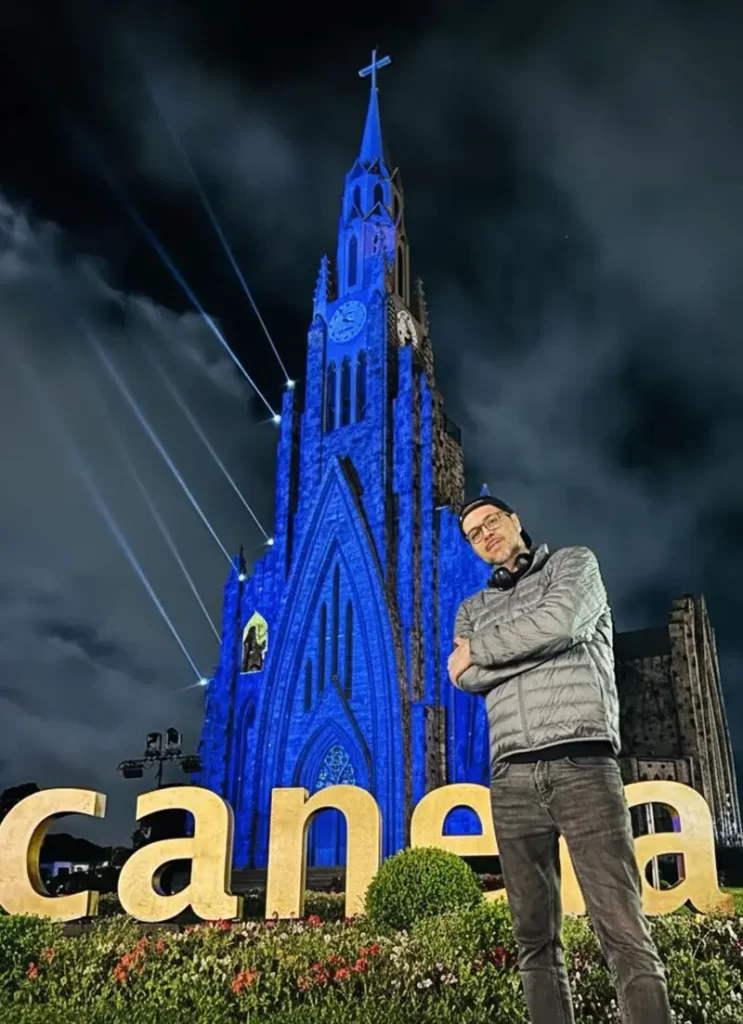 MONEGAL – Com certeza. Cada trabalho, para mim, é um desafio. Eu costumo dizer que encaro cada projeto como se fosse o último da minha carreira. Ou eu entrego 100%, ou eu prefiro nem fazer. E quando trabalhamos com espetáculo ao vivo, a responsabilidade é ainda maior, porque simplesmente não há espaço para erros. No caso do espetáculo da Catedral de Canela, esse desafio ganha uma dimensão ainda mais especial. Estamos falando de um patrimônio histórico, de um símbolo da cidade, de um lugar que mexe profundamente com a memória e o sentimento de toda a região. Então, sim, é um grande desafio.