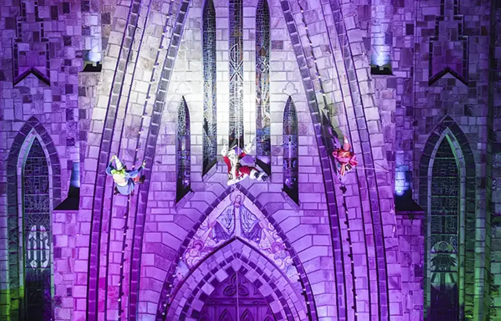 MONEGAL – Podem esperar um espetáculo realmente transformado. Nós repaginamos tudo com muito cuidado e carinho. Algumas animações foram totalmente refeitas, outras ganharam novos detalhes, mais delicados e poéticos. E a trilha sonora – que é uma das grandes responsáveis por conduzir a emoção do público – também foi completamente refeita. Todas as trilhas passaram por uma repaginação profunda, trazendo mais sensibilidade, mais intensidade emocional e um toque ainda mais lúdico ao espetáculo. O blend entre música e projeção cria momentos muito especiais. A história continua lindíssima e profunda. Ela conta um pouco da origem da própria igreja – como foi fundada, por quem, e de onde veio essa força coletiva – trazendo um embasamento histórico sensível e inspirador. E também faz uma menção às dificuldades que todos nós enfrentamos recentemente, como enchentes e queimadas, convidando o público a refletir sobre resiliência, união e sustentabilidade.