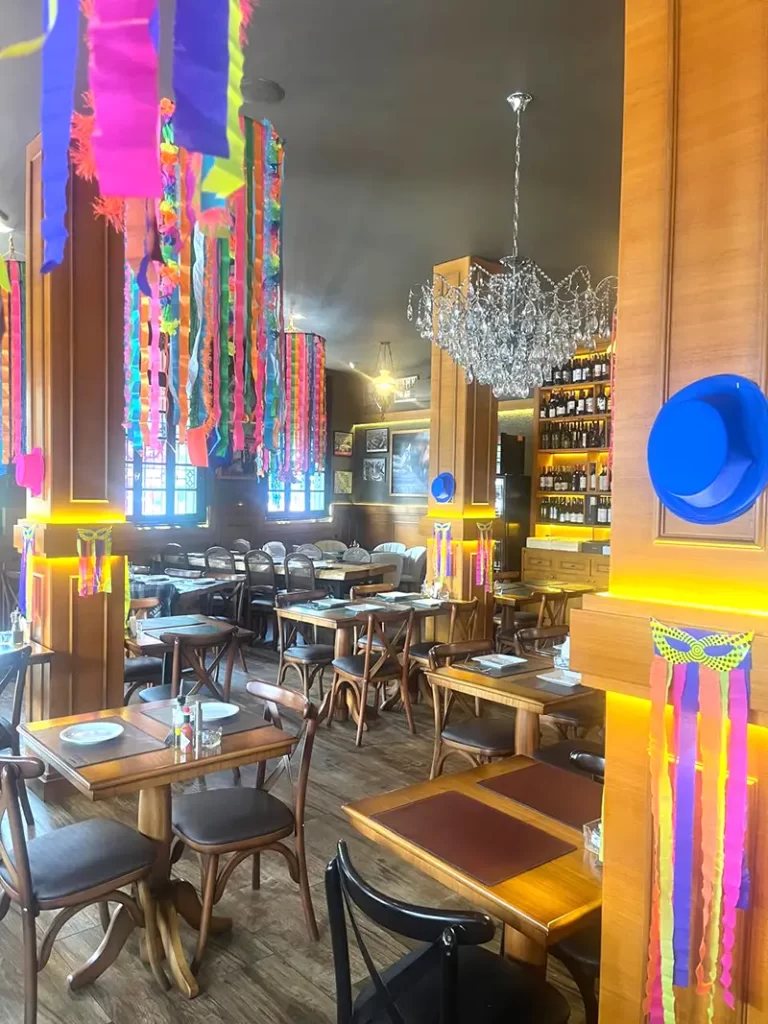 De 12 a 16 de fevereiro, o restaurante assume um clima diferente. Pela primeira vez, aposta em uma decoração temática de Carnaval, assinada por Deda, da Rosa Ferro Atelier, que já havia marcado presença na ambientação de Natal da casa. Agora, a proposta é outra: dar cor ao espaço, mudar a atmosfera e convidar o público a permanecer.