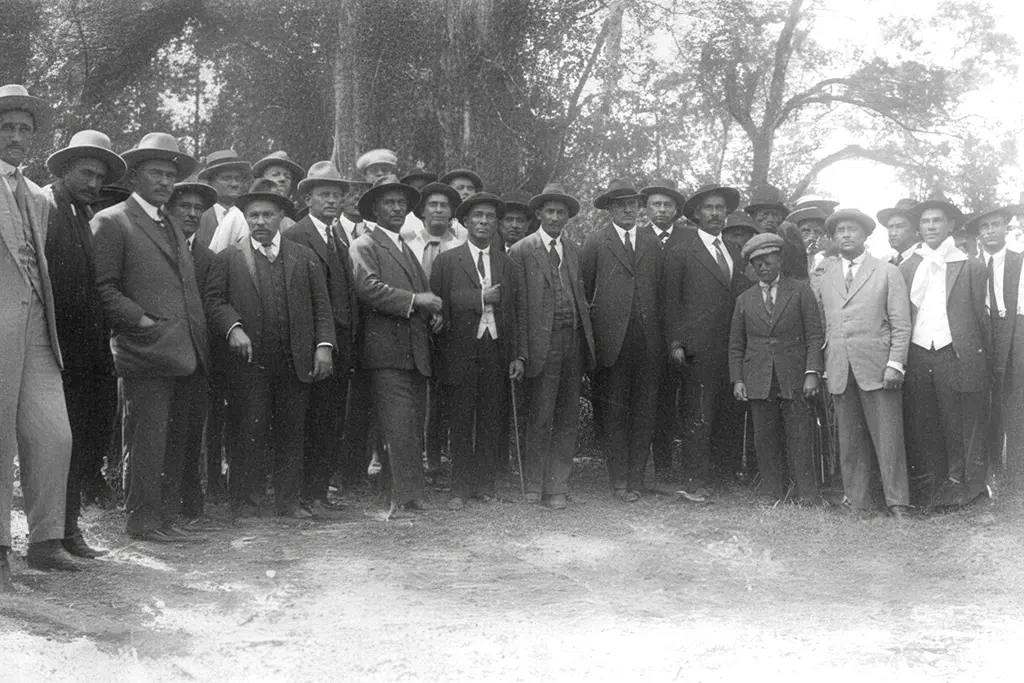 CIDADÃOS presentes na instalação do Sexto Distrito de Taquara, com sede em Canela, em 14/3/1926. Na primeira fila, da esquerda para a direita (a partir do 6º): Major Nicoletti, Cel. Diniz Martins Rangel, João Manoel Corrêa, Cel. João Corrêa Ferreira da Silva, Henrique Muxfeldt, Alfredo Rangel e o juiz Dr. Júlio Casado, entre outros.
