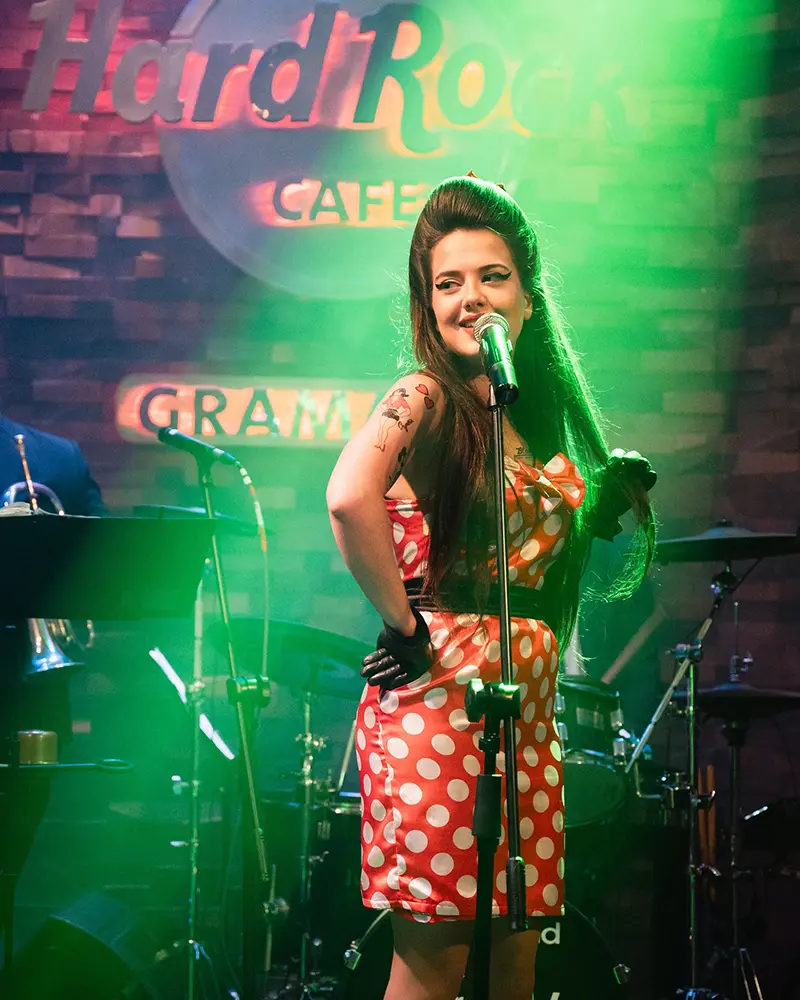 Apresentar-se na noite é outra escola onde nossa entrevistada é bem formada. Começou integrando o show da pizzaria Cara de Mau, em Gramado, cujos proprietários investiram na classuda Gatzz, casa noturna à la grandes metrópoles, convidaram Taine e onde ela integra o elenco até hoje. Nas terças e quartas, ela canta no não menos prestigiado Hard Rock Cafe (sem acento) de Gramado, interpretando magistralmente Amy Winehouse.