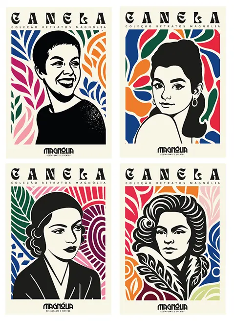 A partir desta semana, o Magnólia, em Canela, coloca em ação seu novo menu: Coleção Retratos. Em quatro capas ilustradas, ele celebra Elis Regina, Leila Diniz, Pagu e Zuzu Angel, quatro mulheres brasileiras que marcaram história e que, de alguma forma, habitam o espírito da anfitriã Magnólia. Além da ilustração, o material traz ainda informações sobre cada uma delas e porque foram escolhidas para o projeto.