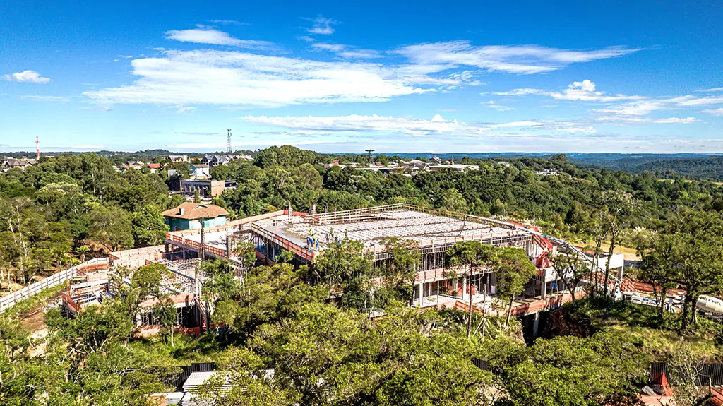 A obra de construção do Pompéia Pryme anda celeremente na área próxima à divisa com Gramado. A cada semana a obra toma vulto, em uma velocidade digna de indústria construtiva chinesa.