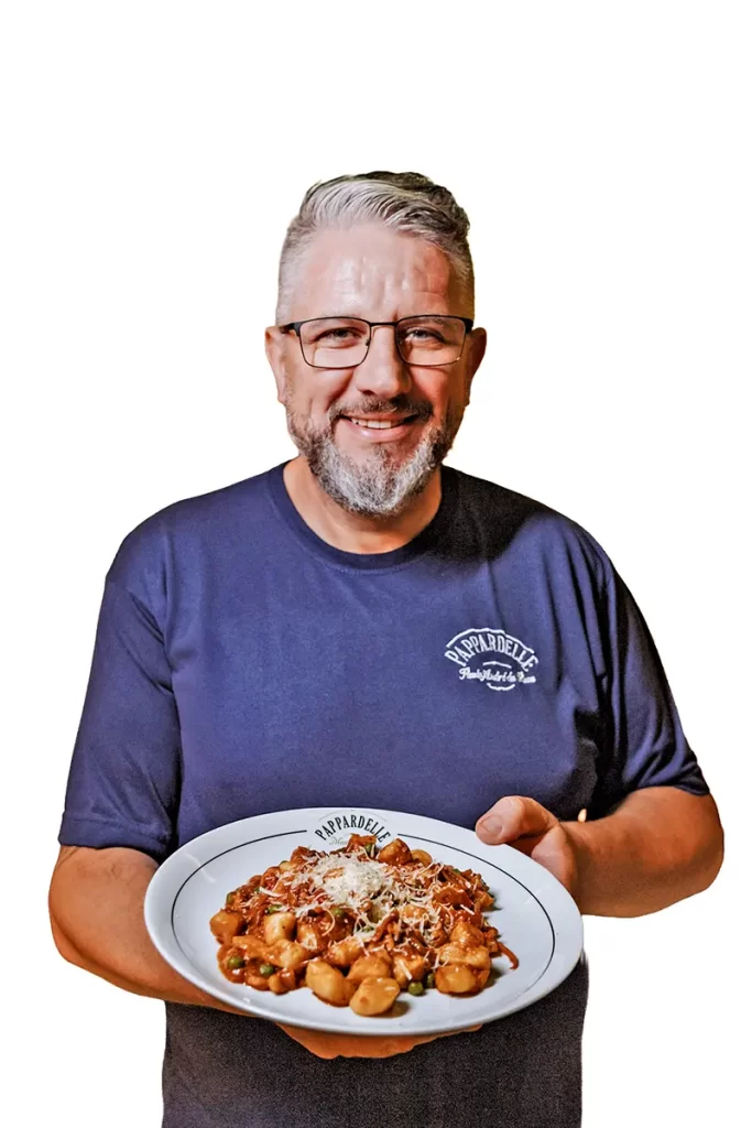 Exatos vinte anos mais tarde, em dezembro de 2017, tendo se aprimorado na arte de produzir massas artesanais, inaugurou o restaurante Pappardelle, especializado em pastas variadas.