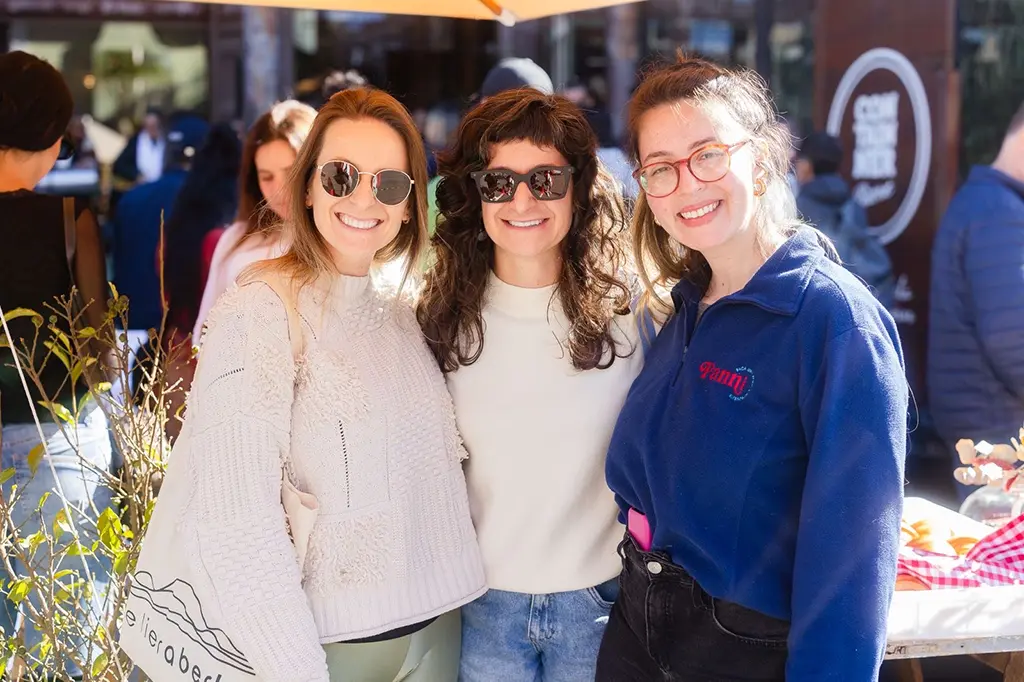 Carol Parmegini, Bianca Carneiro e Jéssica Piffer na Festa na Rua do Containner Bistrot, no último domingo, que reuniu os amigos e clientes para uma feijoadinha com samba.