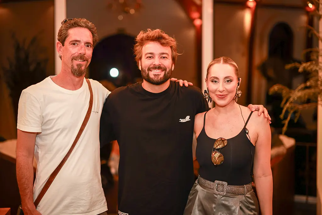 Daniel e Victória Bertolucci com Marcos Ruback Schmidt do Dubdogz no Sunset das Estrelas no Olivas de Gramado