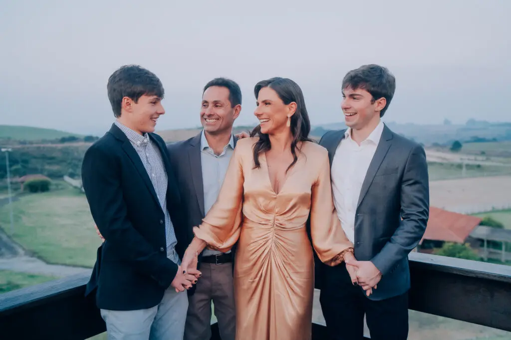 Any Brocker com os filhos Gonçalo e Vicente e o marido Luiz Américo Guimarães nas comemorações dos 50 anos dela