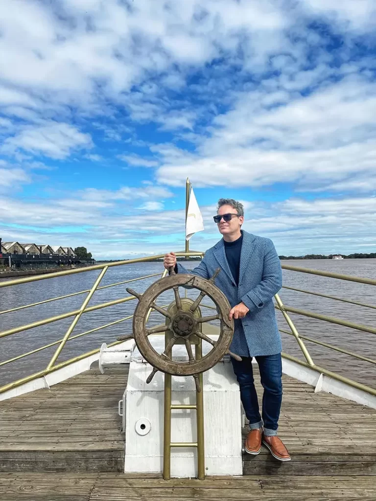 Adriano Cescani atento as atrações da Capital gaúcha. Na foro um passeio no tradicional Cisne Branco pelo Guaíba
