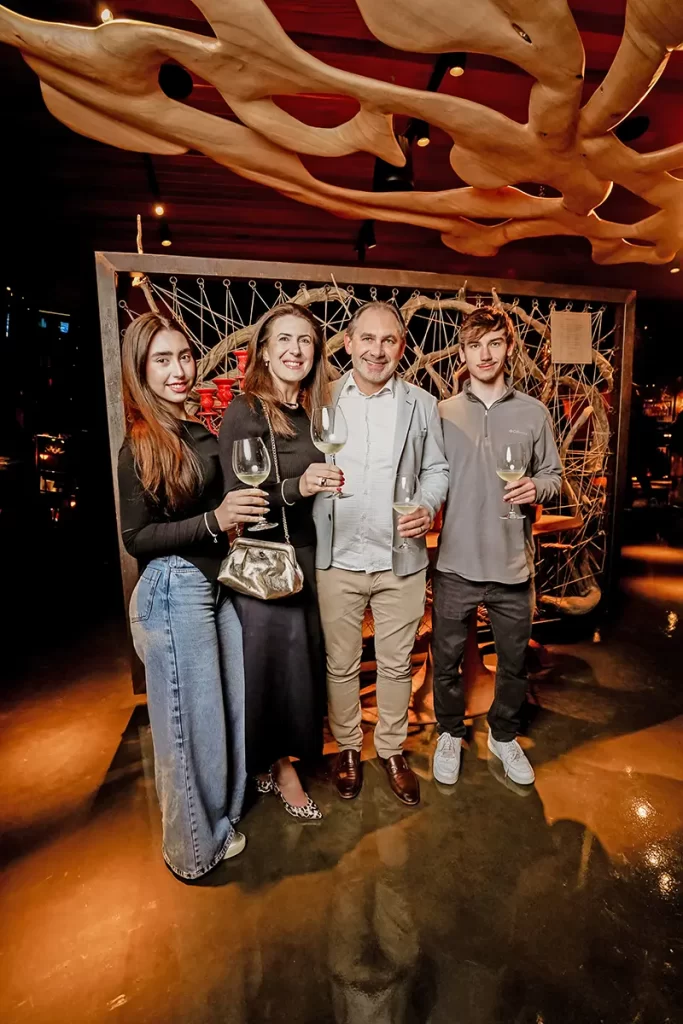 Marino Fritsch com a esposa Cláudia Vaccari e os filhos Pedro Fritsch e Maria Clara Fritsch. O escultor assina as obras de arte esculpidas em madeira que fazem parte da decoração do Soleil Casa Perini. O mobiliário também leva sua assinatura