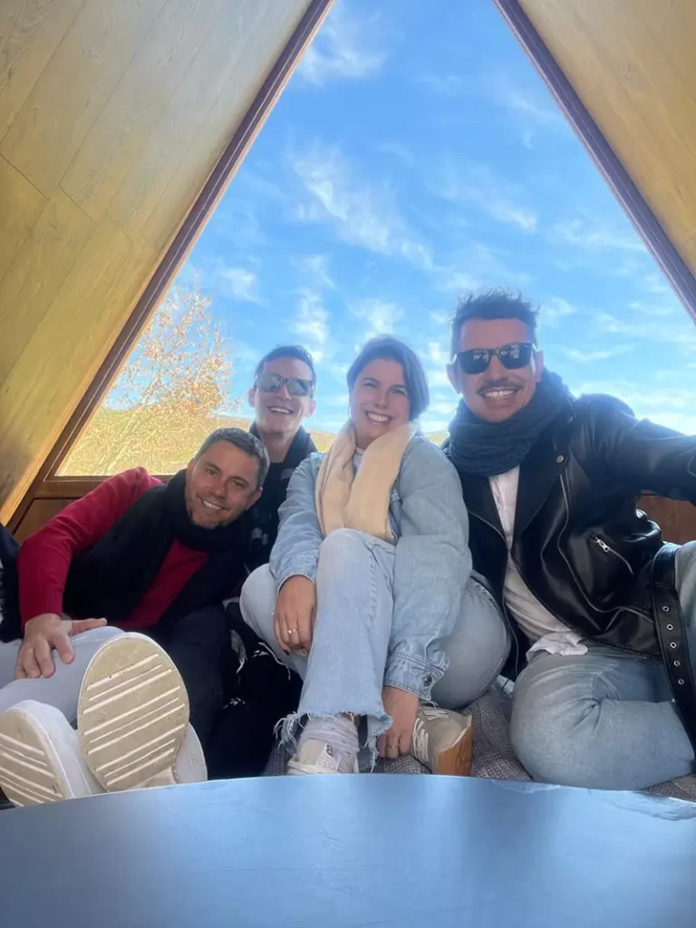 Os amigos Jonas Stange, Leonardo Pontin, Manoela Scott e Tiago Melo curtindo o Miolo Garden, em Bentos Gonçalves!