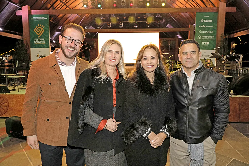 Na abertura oficial do 2º Festival Gaúchos, Ricardo Bertolucci, secretário de turismo de Gramado; Sônia Molon , secretária da Fazenda de Gramado; Rosa Helena Volk, presidente da Gramadotur e Vinicius Garcia, presidente do Instituto RSNASCE, realizador do evento
