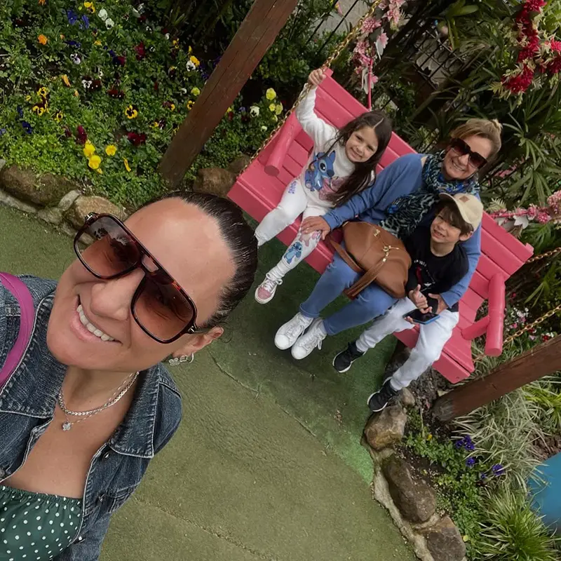 Um domingo feliz: Fernanda Angeli Duarte, com sua mãe Elione Queiroz e os netos Antônia e Francisco numa selfie em família!