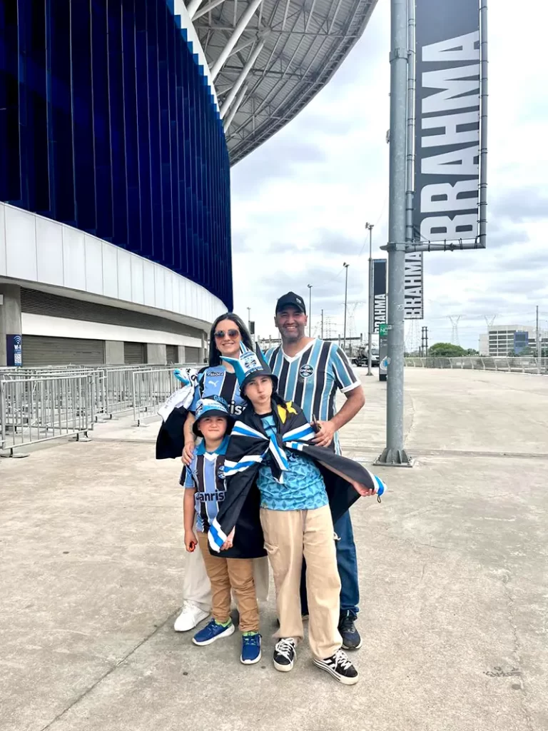 Duda e Nai Siqueira levaram os filhos Isabeli e Benicio para assistir o jogo do Grêmio no último sábado na Arena. Família pé quente, voltaram pra casa com a vitória e com essa linda lembrança vivida em família