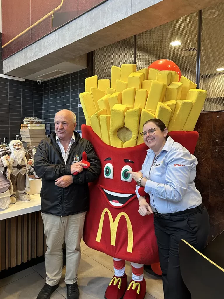 O vice-prefeito Luia Barbacovi e a gerente Tatiana Brock nos festejos dos 13 anos do Méqui, em Gramado