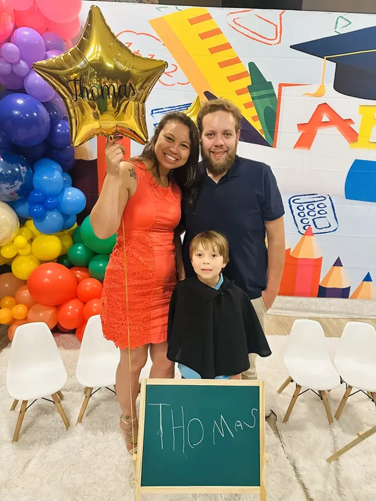Letícia Oliveira e Mateus Vasques na formatura repleta de emoções do Prézinho na Escolinha Risque e Rabisque