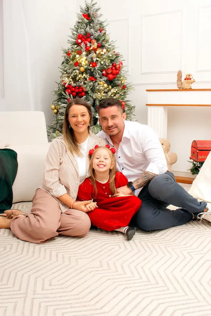 Vanessa, Aurora e Carlos Schmitt fazendo registros de Natal