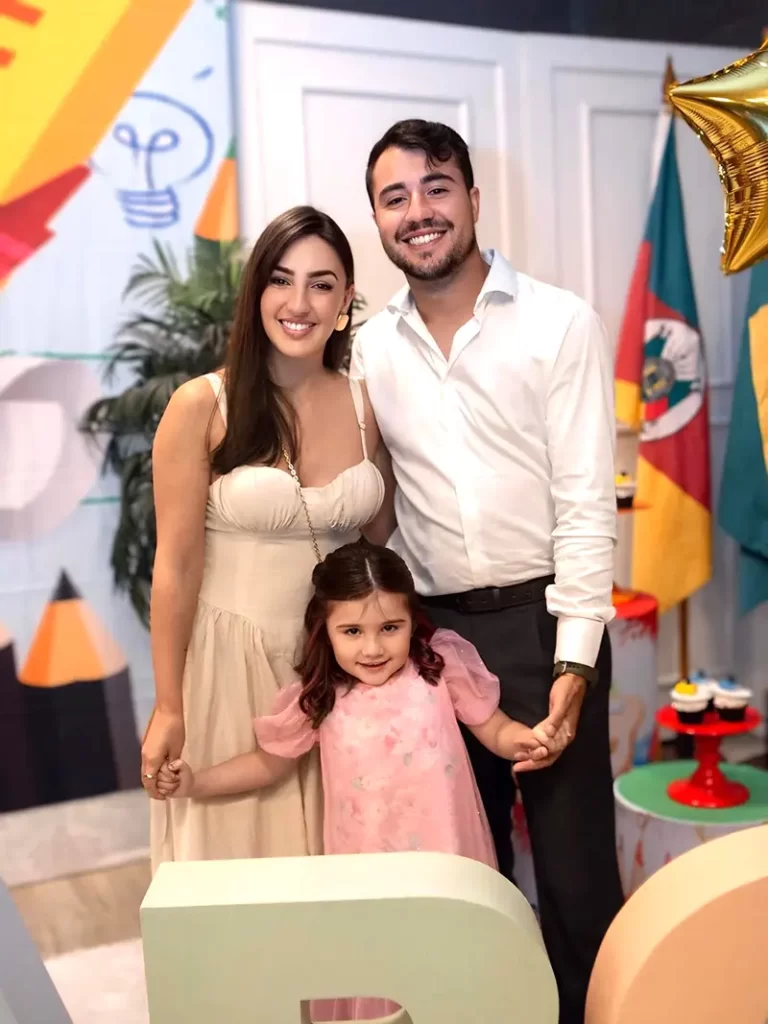 Vitória Mengue e Roger Martins cheios de orgulho da pequena Romana que concluiu o pré II na Risque e Rabisque e agora irá para a escola dos Grandes!