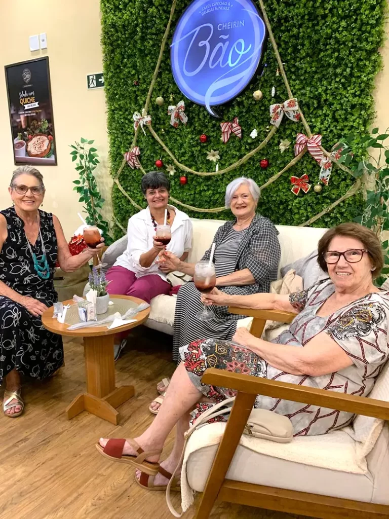 Num dia qualquer de janeiro, brindando ao Novo Ano, as amigas Sheila, Márcia, Glenda e Nilda, no Café Cheirin Bão