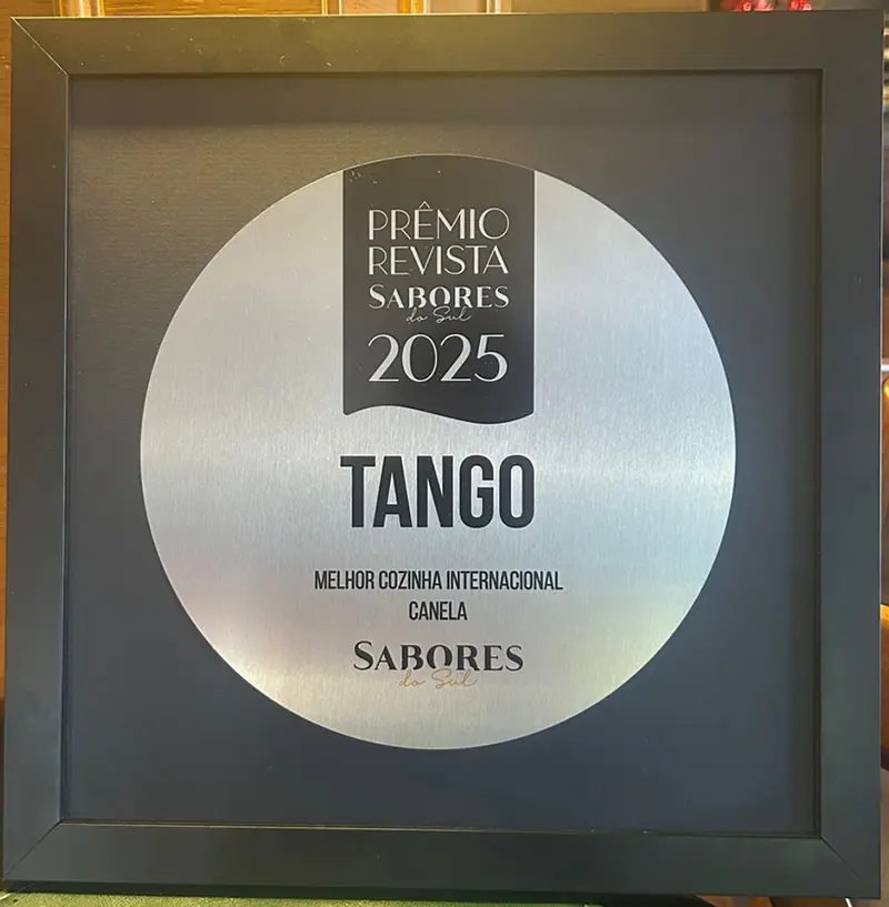 O Tango Restaurante vive um momento especial. Em 25 de novembro de 2025, a casa comandada por Rafael Vinicius da Silva foi reconhecida pelo Prêmio Sabores do Sul na categoria Cozinha Internacional, distinção que consolida o restaurante como uma das experiências mais consistentes e representativas da gastronomia argentina na região.