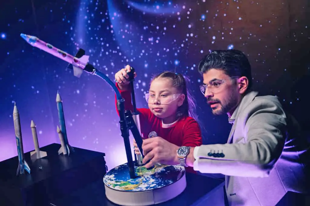 Além de conhecer itens originais usados por astronautas, o espaço oferece o projeto NAVE – Núcleo de Aprendizagem e Viagens Espaciais – laboratório educativo que propõe atividades práticas inspiradas em missões reais. Em mesas, com apoio de monitores especializados e material explicativo, os participantes iniciam a experiência com a montagem de foguetes feitos com material reciclável e, em seguida, realizam o lançamento com propulsão a ar comprimido, tentando acertar os planetas. A experiência dura cerca de 30 minutos e é indicada para crianças a partir de 4 anos.